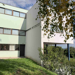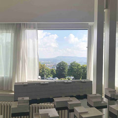Zunächst ging es ins Weißenhofmuseum auf den Killesberg, um in Le Corbusiers Architektur einzutauchen. Sein Gebäude konnte bei der Begehung mit allen Sinnen erlebt werden und uns erwartete bei strahlendem Sonnenschein auf der Dachterrasse eine weite Aussicht bis zur Arena nach Bad Cannstatt.